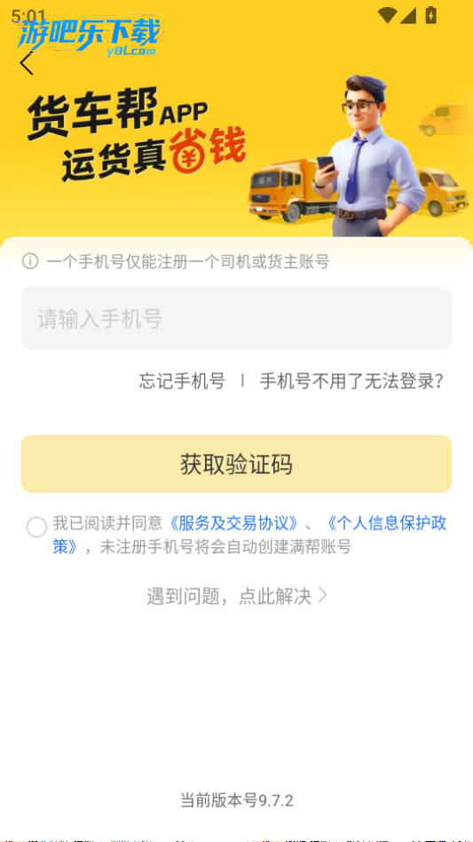 下载进入货车帮货主版软件,输入手机号