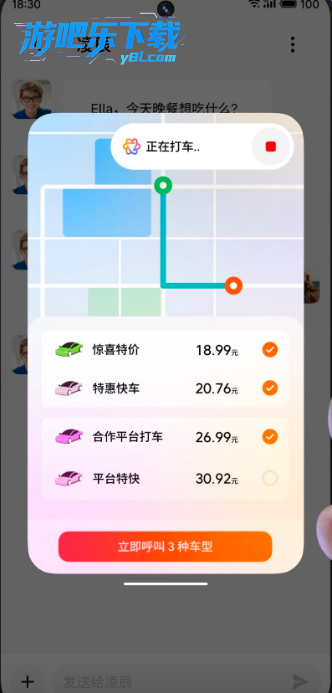 以打车为例,可以除了设置出发地和目的地,像设定途径点、预约出发时间等更复杂的要求,都能够做出动作决策并完成操作,完全不用自己动手。