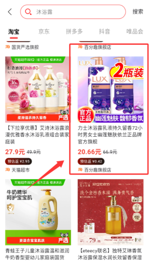 3、在搜索结果页查看商品优惠信息与购买链接。