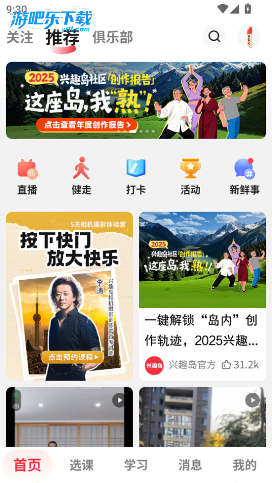 兴趣岛最新版本下载是一款中老年兴趣教育社区平台。平台涵盖 30 多门课程,21 门主流课程的学员数量处于全国领先水平。课程覆盖领域十分广泛,既有太极、五禽戏、易筋经、中医养生等传统养生类内容,快来看看吧!