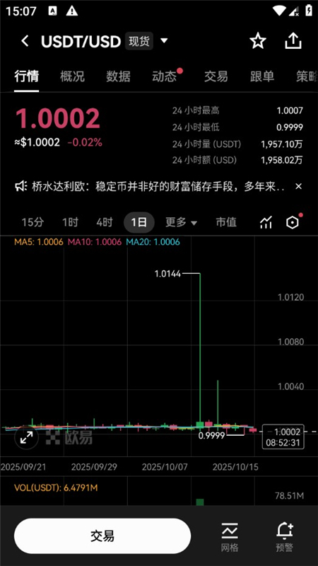 随时查看行情,我们提供多种专业的K线图,强大的行情图表展示;全面的移动体验,最新最快的资讯,帮助您在移动端随时随地掌握最新市场行情。