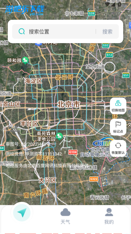 下载进入实时卫星导航软件,首页可以搜索位置查看地图导航