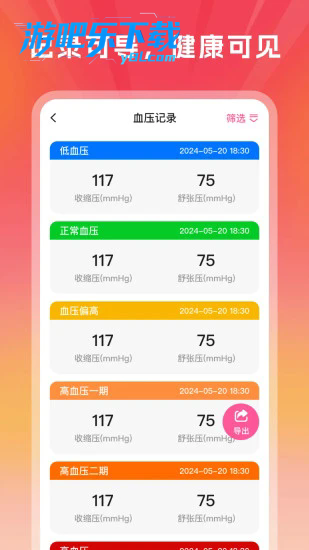 血压血糖手机测量版官方版下载是一款记录+分析+联动硬件血糖软件。无App能仅靠手机直接精准测血压/血糖(需搭配合规设备)。生成日/周/月趋势图表,识别波动规律,异常值标红提醒。
