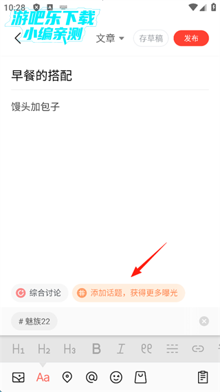 4、也可以通过添加话题来增加曝光率,点击屏幕下方的“添加话题...”。