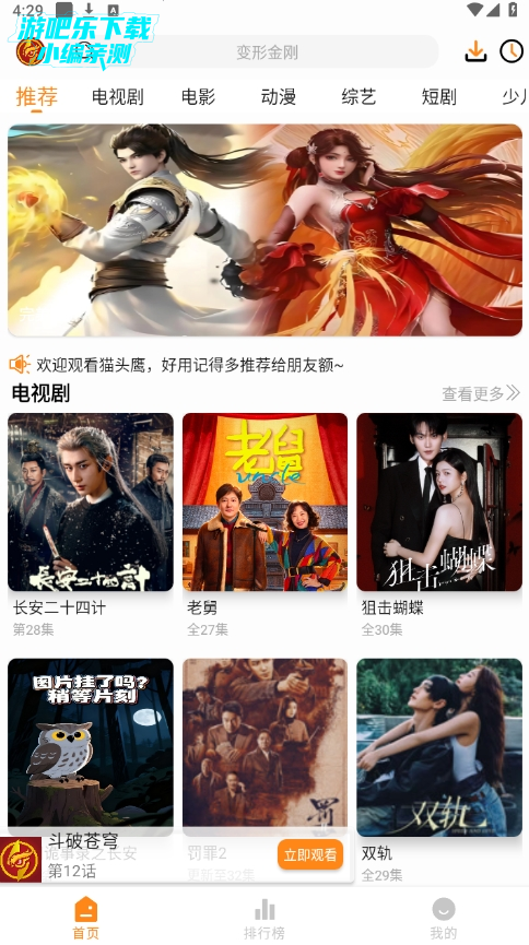 猫头鹰追剧app官方正版(又称猫头鹰影视)是一款专为影视爱好者打造的免费无登录追剧平台,以 “聚合全网资源、实时更新、播放流畅” 为核心优势,覆盖电影、电视剧、综艺、动漫、短剧等全品类影视内容,搭配简洁界面与高清投屏功能,让用户轻松实现 “随时随地畅享影视”,成为热门免费追剧工具。