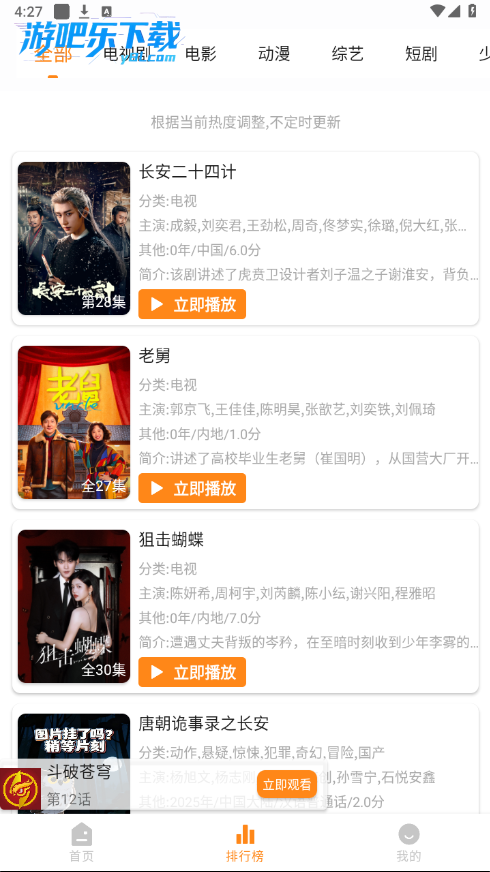 收录院线新片、国产热播剧、欧美日韩剧集、经典老片、小众佳作、综艺动漫、少儿节目等,适配不同观影偏好与年龄层。每日实时同步全网影视动态,热门剧集、新上映电影及时上线,第一时间解锁观剧先机,支持超前点播内容免费看。按类型、地区、年份、热度等维度分类,搭配智能推荐功能,根据观看习惯推送优质内容,快速找到目标片源。