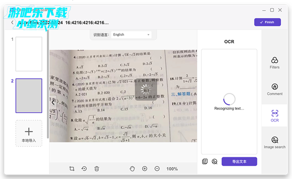 3、用户可以直接对准要扫描的文件,也可以点击左下角的图标,上传相册的图片文件