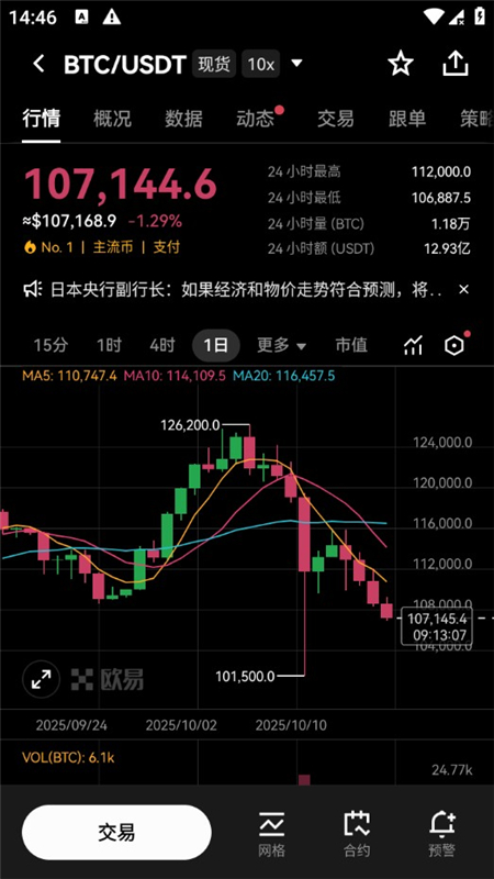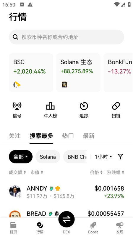 支持多周期K线分析和60余种技术指标(如MACD、布林带),可设置自定义预警(如比特币跌破6万美元自动弹窗提醒)。其数据源整合全球头部交易所实时行情,覆盖98%主流及小众币种。OKXApp集成深度图、资金费率等衍生品数据,支持链上大额转账监控和鲸鱼地址追踪。适合既有交易需求又需风险控制的用户。