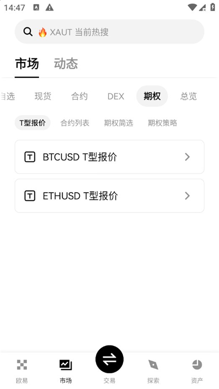 1.登录okb交易所手机APP,进入OKB交易所页面。