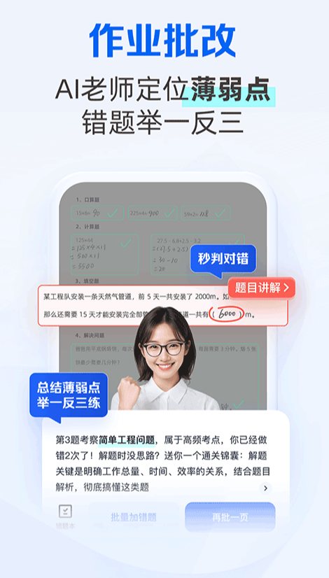 支持整页作业批量批改,大幅提升家庭辅导效率