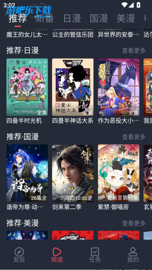 下载安装后注册 / 登录,设置兴趣标签(动漫类型、画风等)。