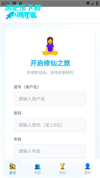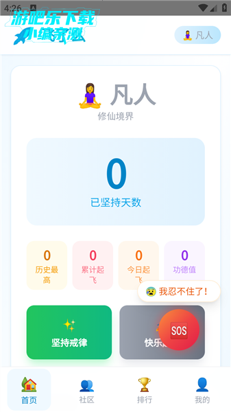 3.登录后进入首页,可以看到坚持戒律、快乐打卡等模块