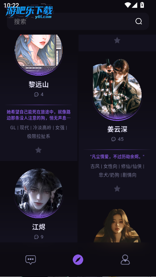 内置 500 + 原创虚拟角色,覆盖古风、现代、奇幻等题材,支持人设详情查看与对话选择。