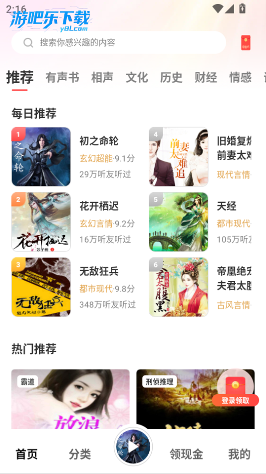本站下载进入口袋畅听软件,这里为你推荐了海量的有声书可以选择