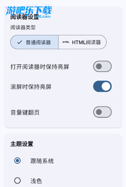 阅读时在屏幕中央呼出菜单,调整字体、行高与主题,适配不同场景(白天 / 夜间)。