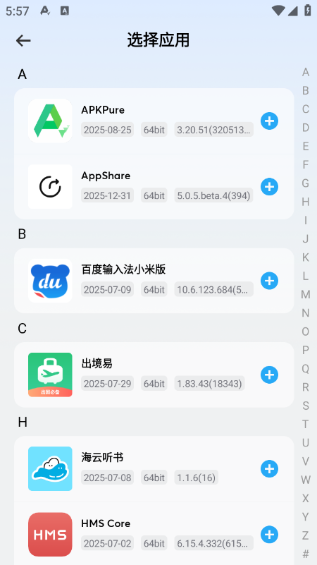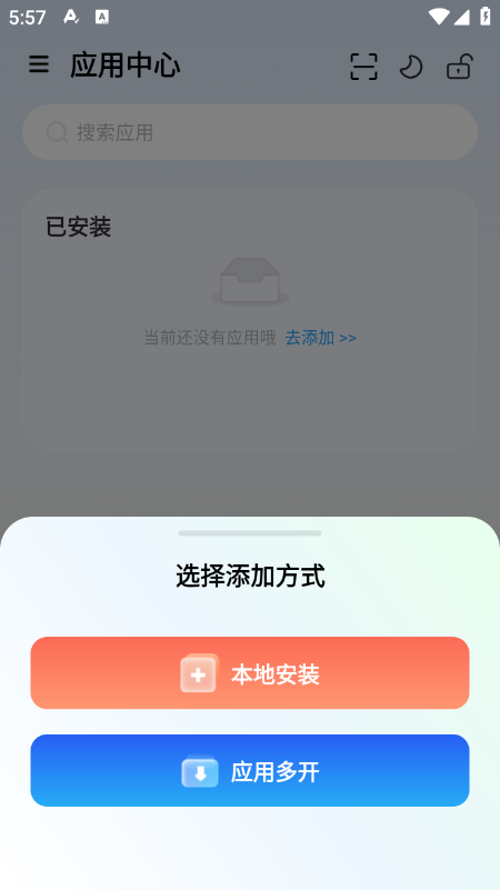 点击主界面 +按钮 或底部导航栏 添加应用,从手机已安装应用列表中选择需要多开的应用。