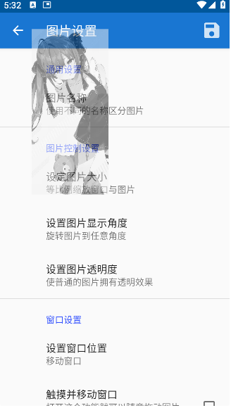 5.保存并查看:完成后点击保存按钮,回到首页即可看到已添加的悬浮窗图片。
