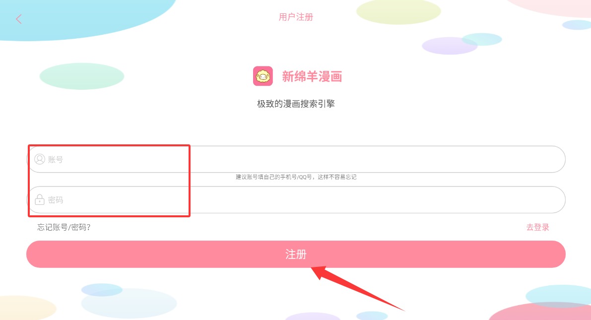 1、首次打开新绵羊漫画APP需要输入手机号码进行注册,按要求设置登录密码后即可完成账号创建。