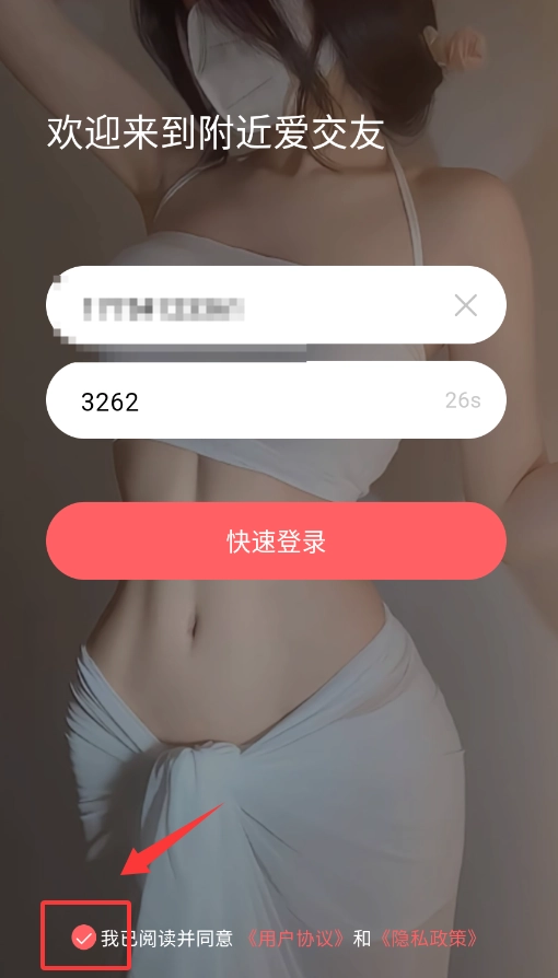 1、打开附近爱交友应用后,在登录界面输入本人已完成实名认证的手机号码。