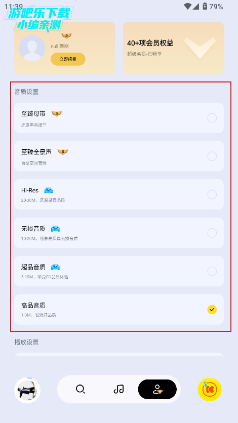 2、支持音质设置,播放设置。