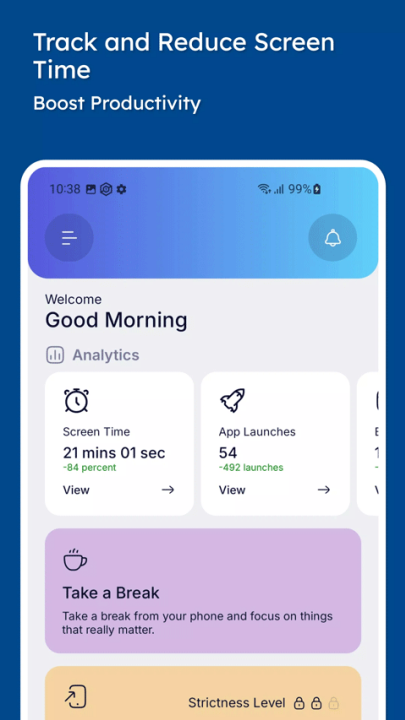 专注计时功能:支持 Pomodoro(番茄工作法)与自定义专注时长,结合拦截功能提升专注效率