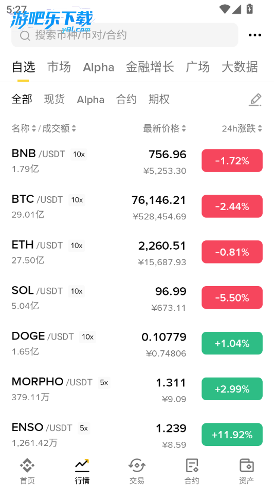 可以查看各种加密货币的行情