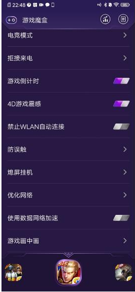 5、4d游戏震感2.0同样是iqoo所推崇的重要功能,开启上滑控制面板游戏魔盒总开关,进入设置——游戏魔盒下,开启对应游戏的4d游戏震感开关就能启动了。王者荣耀中当用户达成3、4、5杀时触发手机震动,不同场景有不同强度震感反馈。