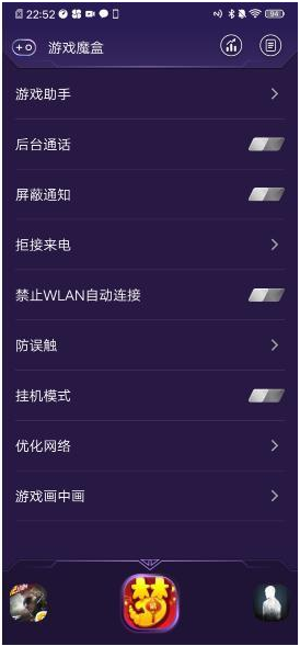 2、在游戏魔盒的菜单中,针对每一款游戏都有诸多详细的选项可供玩家设置,譬如后台通话,屏蔽通知,网络优化等,保证玩家的游戏过程不被任何外来事物干扰,获得极佳的游戏体验。
