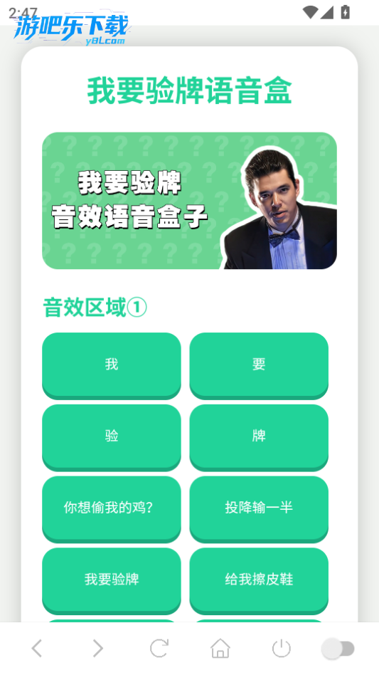 我要验牌语音盒子手机版是一款很有意思的语音包app。这里包含了现在很火的卧腰验牌的语音包,来自法国的赌神,皮尔卡松。点击就可以轻松播放语音,感兴趣的朋友可以来试试!