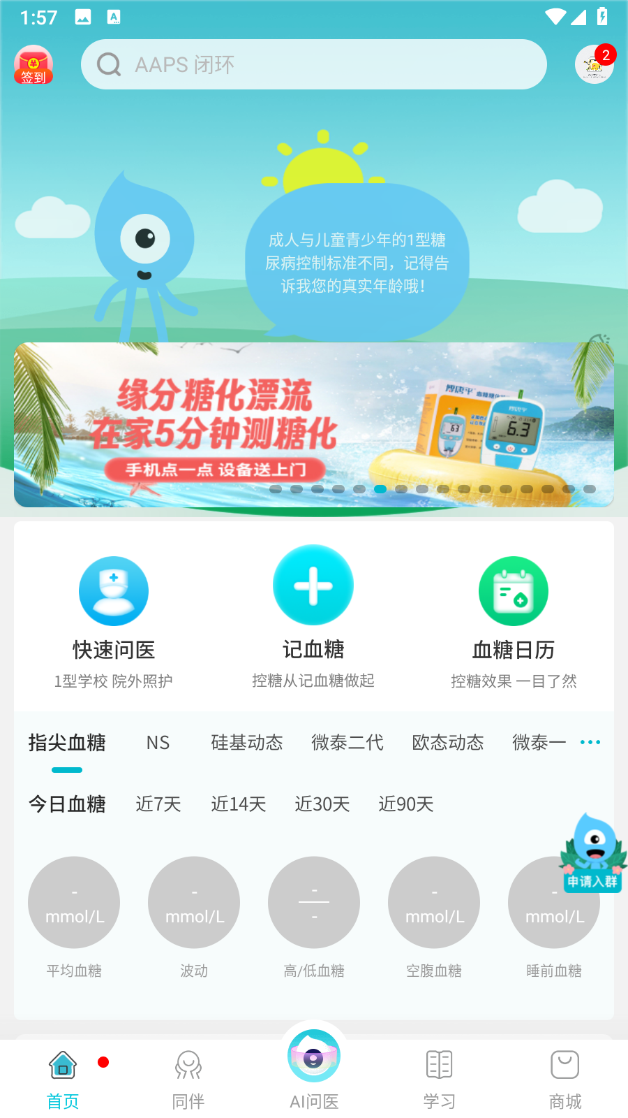 1、打开糖糖圈APP,点击底部导航栏AI问医,进入AI糖宝界面。