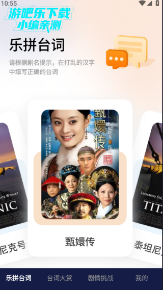 乐拼台词:补全经典影视对白,适配《甄嬛传》《流浪地球》等热门作品,考验台词记忆与影视熟悉度。