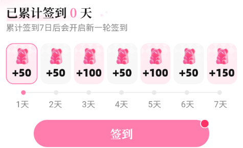 累计签到7天,每天可获得软糖奖励,7天后开启下一轮签到