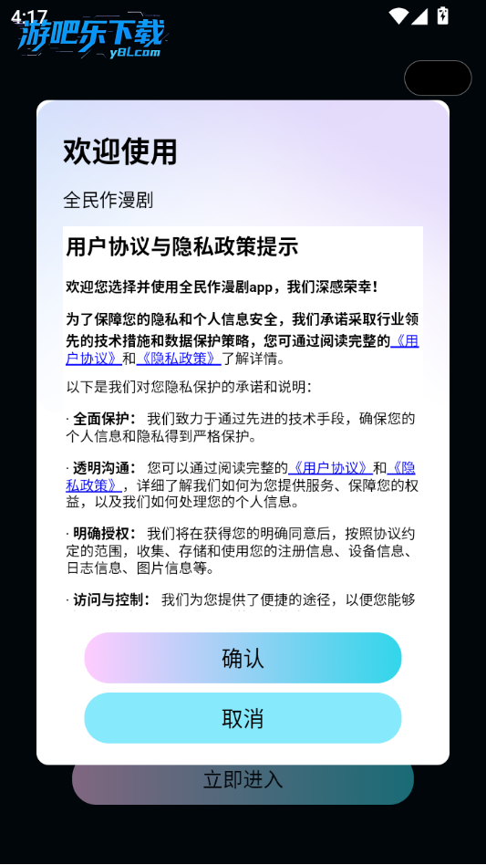 1.下载安装全民作漫剧app,之后打开,同意协议;