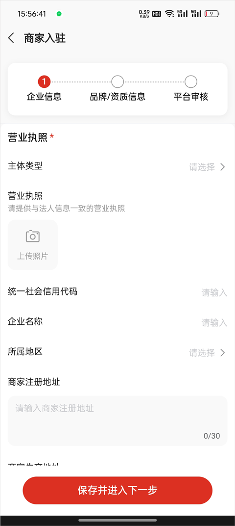 3、按照要求将商家相关资料填写完整并提交,提交后系统会进入审核流程,耐心等待即可。