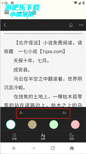 一七小说网如何调整字体大小?