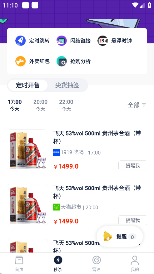 定时抢购精确设定抢购时间,倒计时自动执行,避免错过发售窗口