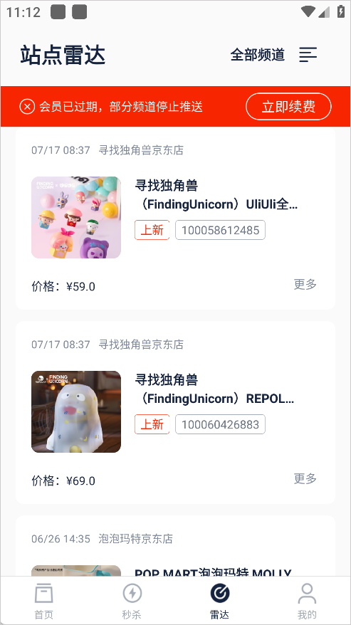 突袭补货监控 24 小时侦测平台 "突袭" 发售和补货,第一时间推送提醒