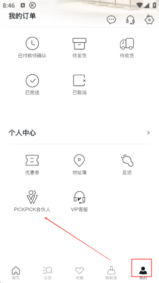 1、打开软件点击【我的】在点击【PICKPICK合伙人】