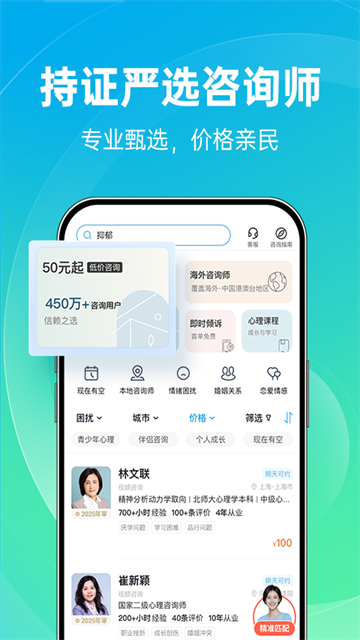 【专业心理咨询】一键预约专家,恋爱婚姻、情绪压力、亲子育儿、职场发展等多领域问题,线上线下多种选择,价格亲民,轻松无负担,助您舒缓人生困扰;