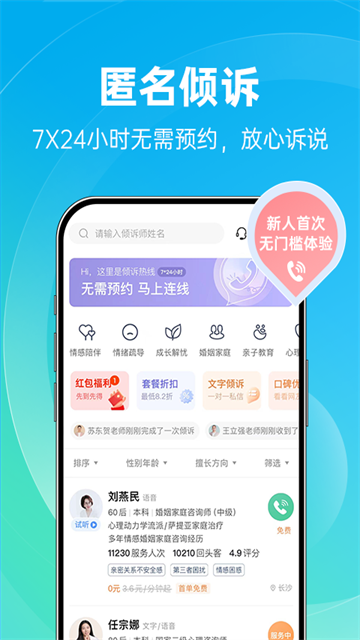 【即时倾诉】无需等待,实时连线专家,享受超值心理支持,安心陪伴;