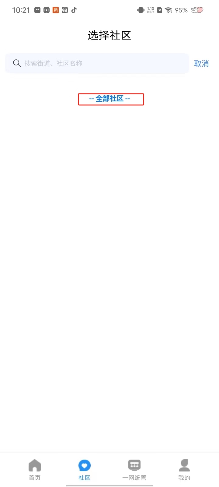 1、首先,点击下方功能栏中的【社区】,点击【全部社区】或者直接搜索所在社区、街道名称;