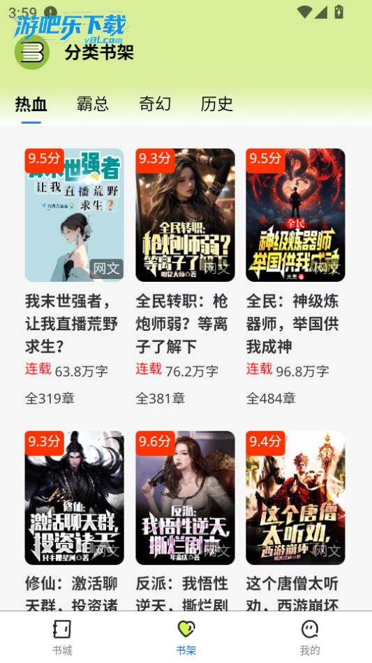 题材全覆盖:都市、玄幻、言情、仙侠、悬疑、历史、科幻、耽美、轻小说、出版文学等。