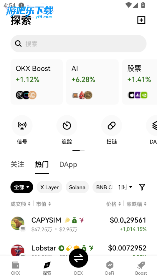 下载进入okk钱包软件,点击探索