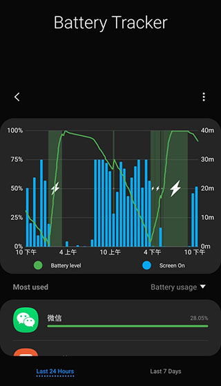 - 可以查看近24小时或者近7天的电池使用量