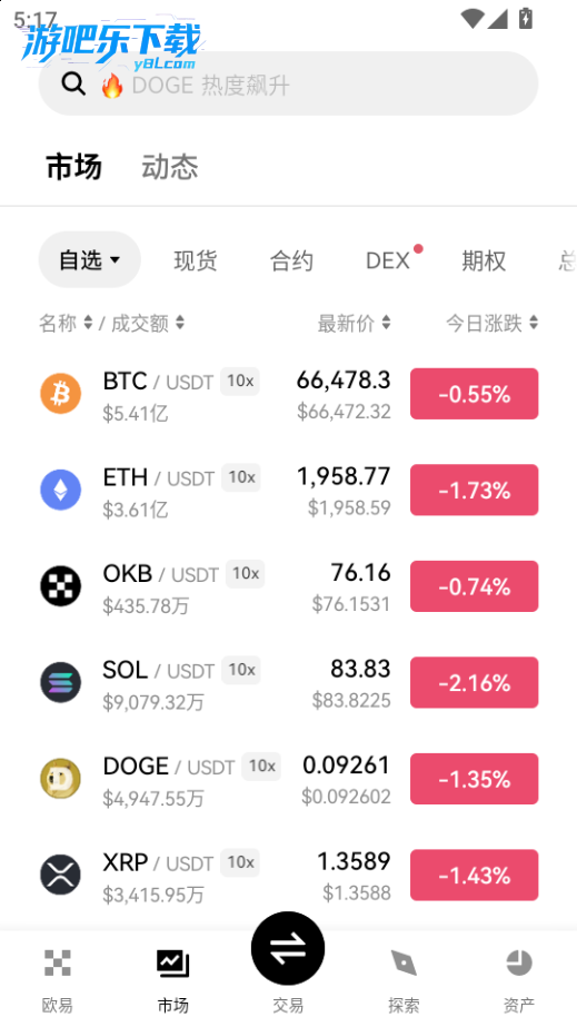 下载进入eok交易所软件,点击市场