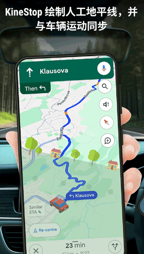 动态地平线:最经典,随车辆加速、减速、转弯同步倾斜。