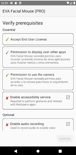 解决方法:进入手机设置 → 应用管理 → 找到EVA Facial Mouse → 开启所有所需权限。
