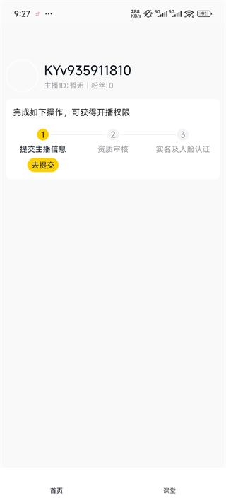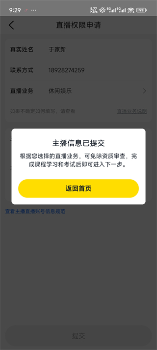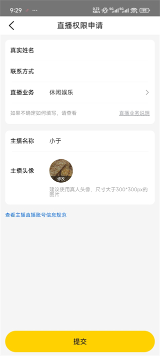 3、申请直播权限点击提交