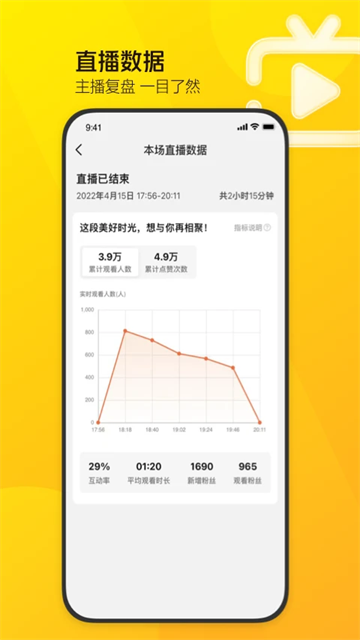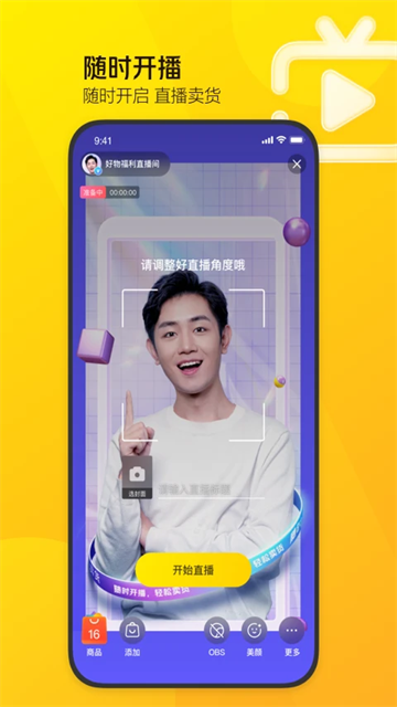 手机开播:无需电脑,App 内直接发起直播,3 步开播。