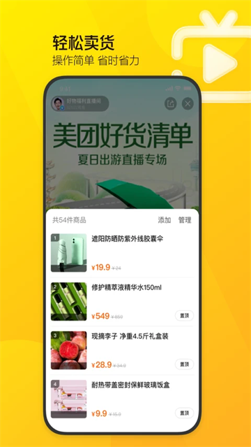 美团直播助手是美团官方为本地生活商家、达人打造的免费手机开播工具,核心是一键开播,商品上架,订单管理,数据复盘,一部手机就能做美团直播带货。